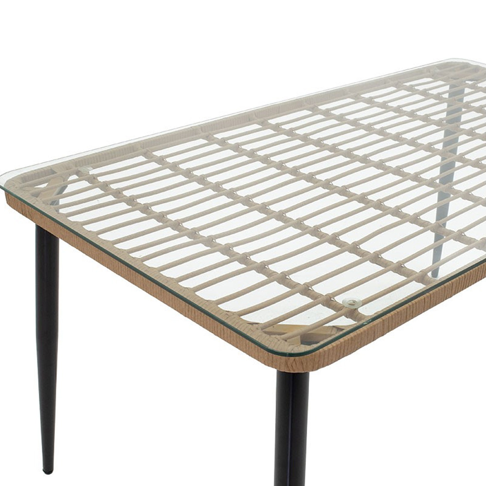 Κυρίως επιφάνεια τραπεζιού από PE rattan. Το PE rattan είναι ένα είδος οικολογικού συνθετικού rattan, ανακυκλώσιμο και με μεγαλύτερη ανθεκτικότητα σε σχέση με τα άλλα είδη.